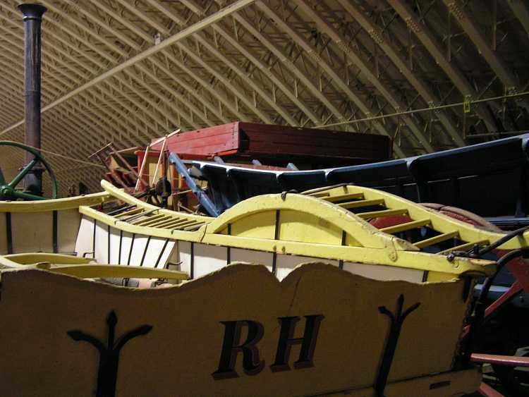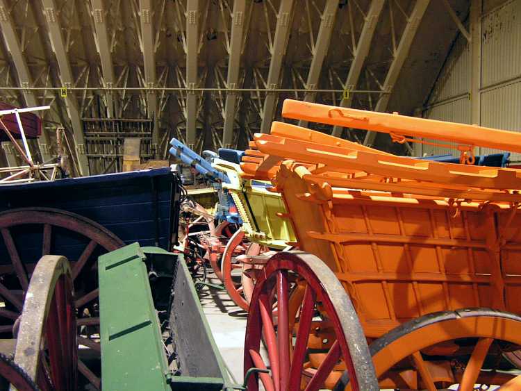 Horse drawn carts, in a dark corner.