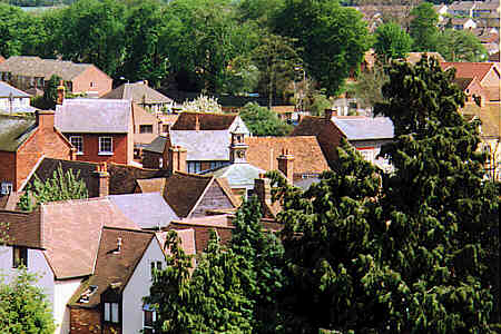 Across to the Swimming Pool, and playing field. Beyond the hedge,